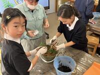 造園科3年生が授業の中で田原小学校の児童と造園体験交流会(苔玉製作)を行ってきました。交流会では児童と楽しく苔玉を製作することができ、とても充実した交流会になりました。本日製作した苔玉は愛情をこめて育ててくださいね!いつでも北稜高校に遊びにきてください。