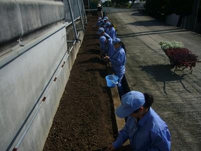 花壇への花苗定植(園芸科学科1年 総合実習) 投稿日時 : 2019/11/06 学校サイト管理者 先週、園芸科学科1年生の農業実習で校内花壇への花苗定植をしました。 花壇の土をほぐして、本校で育てた花苗(パンジー、アリッサム)の定植をしました。