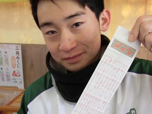 バスケットボール部キャプテンの中川君が代表でおみくじを引いたところ「中吉」という結果になりました。
