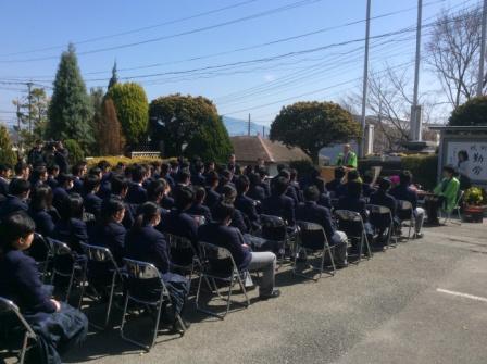 くまもとグリーン農業応援宣言交付式 投稿日時 : 2015/03/17 HRBT2016 晴天の中、くまもとグリーン農業応援宣言交付式が行われました。参加者は園芸科学科・造園科の1・2年生101名です。「くまもとグリーン農業」とは、化学肥料や化学合成農薬を減らした、環境に優しい農業のことです。生徒にはピンバッジが贈呈されました。くまもとの環境を守るために、積極的に行動していきましょう!