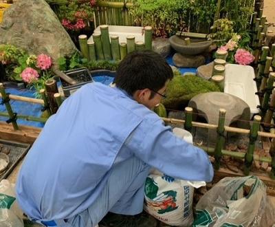 玉名市役所にて「花しょうぶを活かした和風庭園」の箱庭の解体及び撤去を行いました