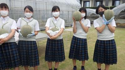 授業でメロンの収穫期が受粉から60日前後であり、葉の状態で収穫期を見分けることを勉強しました。明日から雨が続く予報であることから、収穫するか1週間待つかみんなで話し合いました。