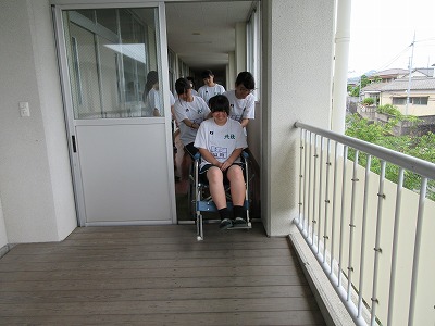 車いす体験を行いました 投稿日時 : 2017/06/01 HRBT2016 3年家政科学科の「生活と福祉」の授業で車いす体験を行いました。二人一組でペアを作り、介助する側、される側の体験となりました。車いすは小さな段差でも押し方に工夫が必要で、介助される側(車いすに乗るほう)の気持ちも理解でき、大変よい経験となりました。