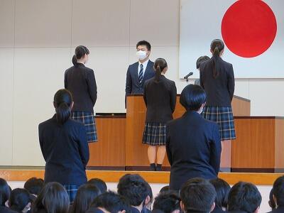 終業式に先立ち、今学期活躍した生徒たちの表彰式がありました。
