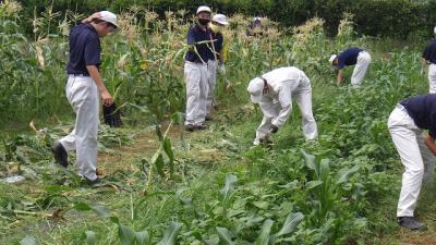 梅雨の晴れ間を見つけて除草実習をしましたが、蒸し暑くて思うようには実習が進みませんでした。
