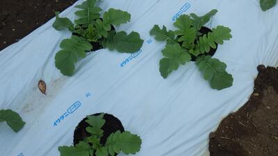 2週間前に播種した苗を植え付けました。その後灌水をしました。