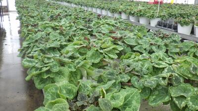 草花専攻ではシクラメンやガーデンシクラメンがちらほらと蕾を上げて開花していました。