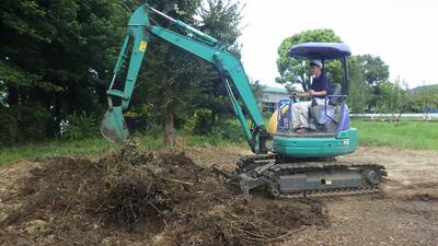 二日目はパワーショベルの実技講習で、操作説明のあと一人ずつ穴掘りを行いました。