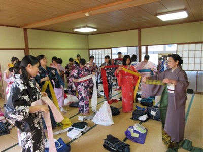 自分で浴衣を着たことがない生徒がほとんどで、初めは戸惑っていましたが、