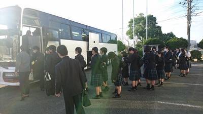ビジネスマネジメント科2年生が、本日朝、先生方に見送られ学校を出発しました。