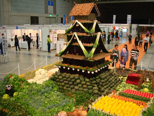ワンダーゾーンにあった熊本県産の野菜で作られた「熊本城」すべて野菜です。