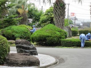 造園科の2年生が玄関前ロータリー付近の樹木を剪定していました。