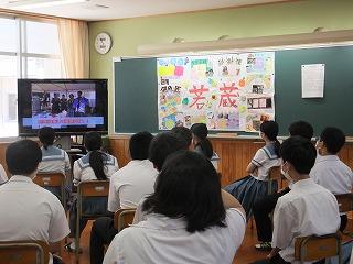 体育館で学校の紹介DVDを見たあと授業参観へ