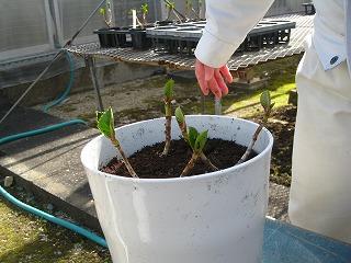本日は4月に販売予定をしているアジサイの鉢上げを行いました。