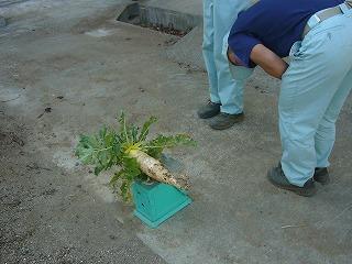 収穫したダイコンは重さや葉の枚数を調査し、家に持って帰りました。