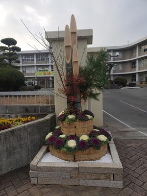 【学校正門前の巨大門松】