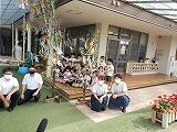 今も続くコロナの感染拡大から不安な日々が続いています。そこで、地域を元気にしたいという思いから、本校の造園科と家政科学科の協同で北稜七夕を製作しました。造園科では、日頃、庭施行において竹や木材の廃材。家政科学科では、調理や被服などの実習から出る布の余りや牛乳パック飲料などの容器廃材をどうにか出来ないかと考え、資材の有効活用として造園科は竹などを竹垣製作の技術を用いて竹垣風笹スタンドを作り、家政科学科は、牛乳パックと余り布を用いて短冊を製作しました。