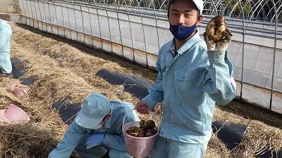 造園科1年の「総合実習」で冬野菜の収穫を行いました。