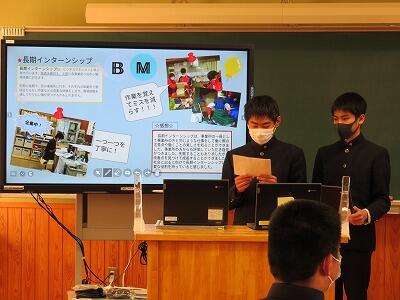 ビジネスマネジメント科の3年生が取り組んできた販売実習について、最後の報告会を行いました