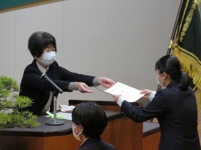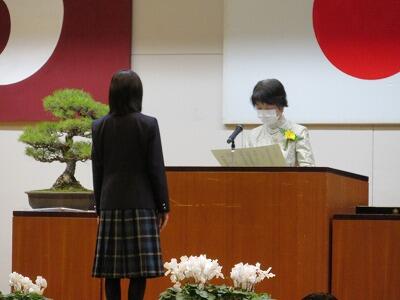 卒業を前に、3年生の特別表彰など行われ、たくさんの生徒が表彰され登壇しました