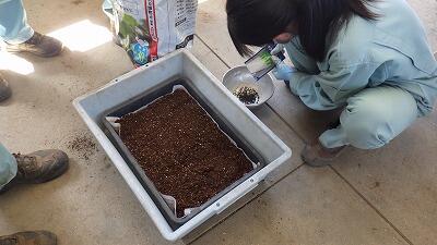 4月からしっかり野菜作りの実習ができるようにいろいろと準備しました。これまでメロンの定植をしたり、スナップエンドの播種をしたり、ジャガイモの植え作けをしました。今日はネギとレタスの育苗のために播種をして、畝立てしたところにトウモロコシを播きました。また圃場の除草してきれいにしました。4月から新2年生頑張れ!