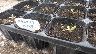 農場では新年度に向けて花や野菜の苗たちがすくすく伸びています。