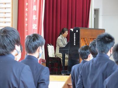 校歌斉唱ができなかったかわりに卒業生が校歌を演奏しました