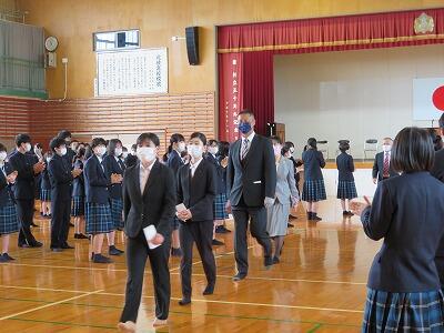 体育館には卒業した生徒たちが大勢来校し、一緒に式に参加してくれました