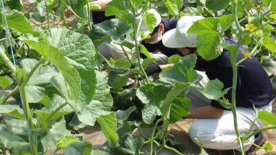 3限目は家政科学科の生物活用でもメロンの受粉と下葉2枚を取りました。