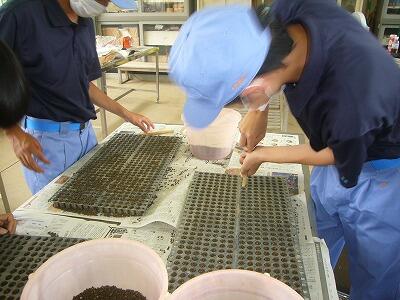 草花では各小学校や中学校を飾る花の苗たちが、1日2回のシャワーを気持ちよさそうに浴びていました。