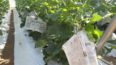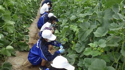 メロンには葉や茎に細かいとげがあり痛い思いをしながらの実習でした。