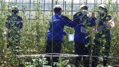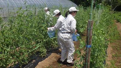 雨が降っていましたが摘果や玉つり、整枝の時期がとっくに過ぎていたので、実を落とさないように慎重に、他の人と協力しながら実習しました。