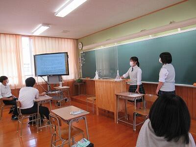 話し合っている生徒に聞いてみると、効率的(班→全体)に話し合いをすすめるために自分たちで発案したそう。