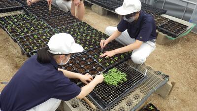 間引きをしたり、除草をしたり、殺虫剤をまいたりと各生徒が自分の農場にあった管理を行いました。