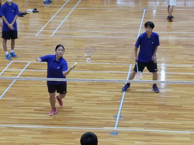 現在、本校部員は高校からバドミントン競技を始めた1、2年生5名(男子3名、女子1名、マネージャ1名)で活動をしています。
