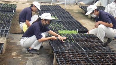 間引きをしたり、除草をしたり、殺虫剤をまいたりと各生徒が自分の農場にあった管理を行いました。