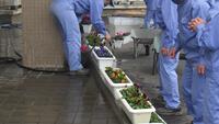 1年生の総合実習で玄関や生徒昇降口を飾る草花プランタの定植を行いました。