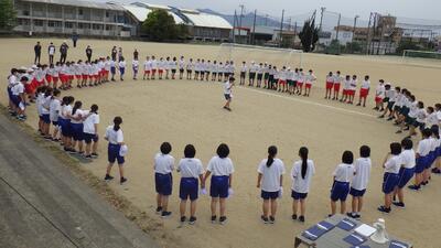 その後、体育館で育友会総会が行われ、昨年度の行事・会計報告と本年度の行事予定と予算案が承認され、また、役員紹介もされました。
