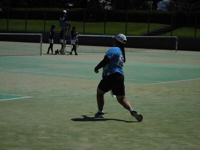 台風6号が沖縄に近づいて時々風が強い県民総合運動公園で令和5年度の1年生大会が行われました。