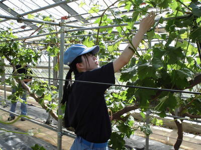 本日の3年生の実習ではブドウの栽培管理の一つ、整枝と房づくりを行いました!