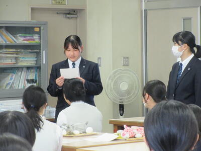 1年生を迎え、2,3年生の家庭クラブ役員を中心に、家庭クラブや家政科について説明しました。
