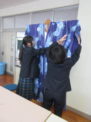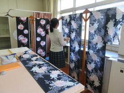 家庭科技術検定2級(和服)の作品です。みんな合格を目指し、頑張っています。