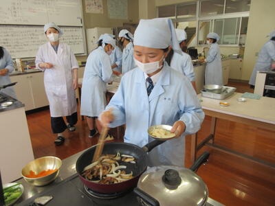 家政科2年生「フードデザイン」での調理実習の様子です。