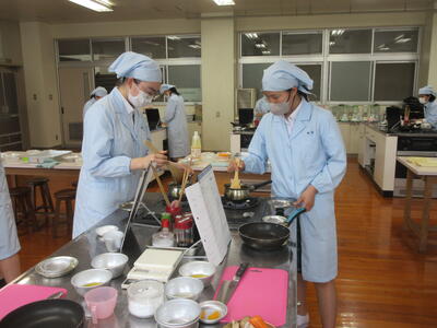 家政科2年が、家庭科食物調理技術検定3級の実技の模擬検定に取り組みました。