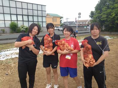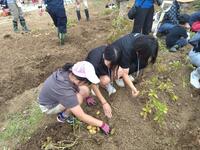 地域の家族と、玉ねぎ・ジャガイモの収穫を行い、その後田んぼに移動し田植えをしました。