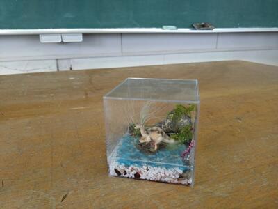 造園科 課題研究の授業で小さな庭のジオラマを作っています。生徒たちが自らデザインし、材料を検討しながら小さな庭を造っています。