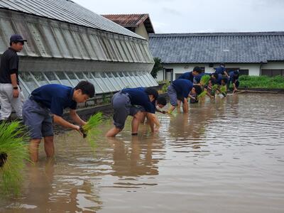 園芸科1年生の総合実習で、本校の水田に田植えを実施しました。