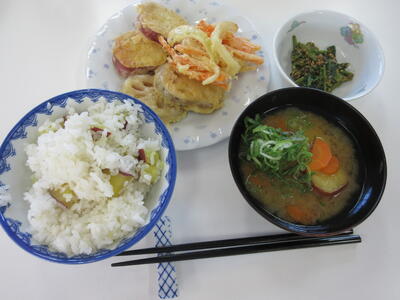「秋の野菜や果物を使用した料理」というテーマで、班ごとの自由献立です。