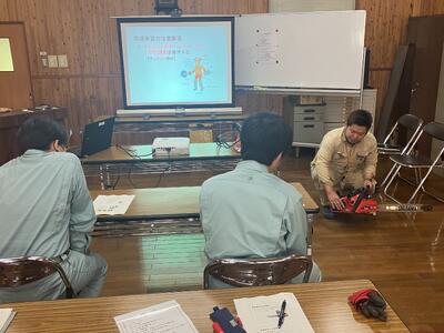 造園科2年生で間伐実習体験に参加してきました。午前中は講義で林業が地球に与えている大切さや午後からの実習に向けた注意点などを学びました。