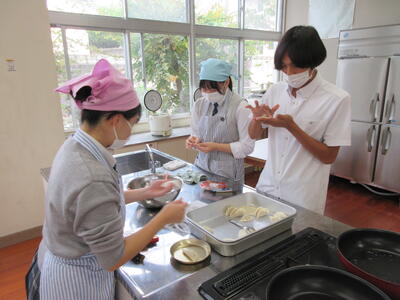 3年選択「フードデザイン」の授業で、「餃子」を作りました。
